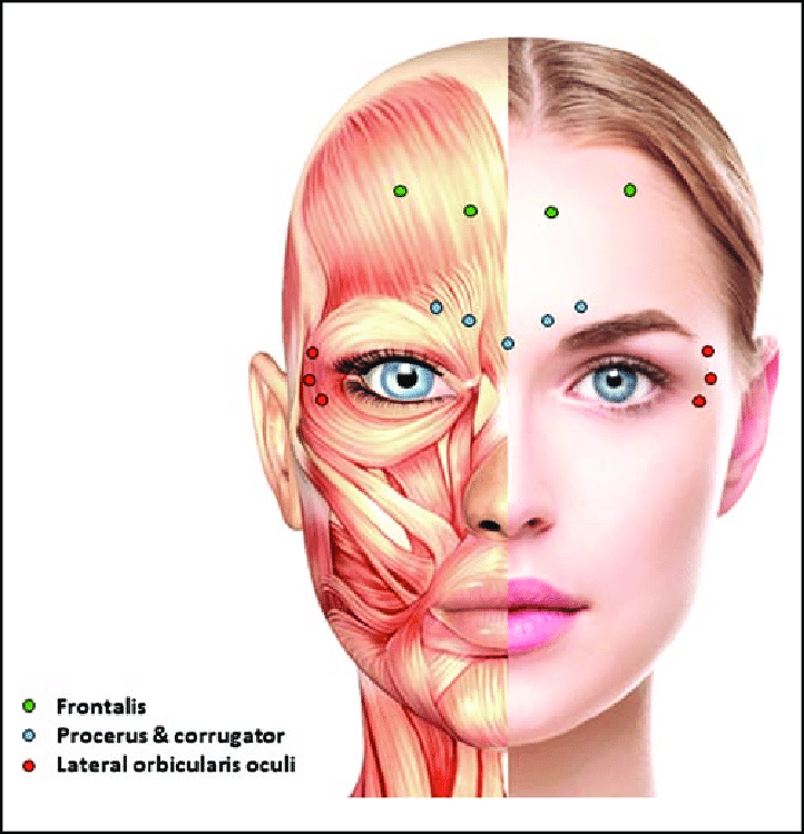 This gives a smoother look around the upper part of the crow’s feet while preserving the muscle pump at the lower corner of the eye.Lower the dose in the lower crow’s feet area.